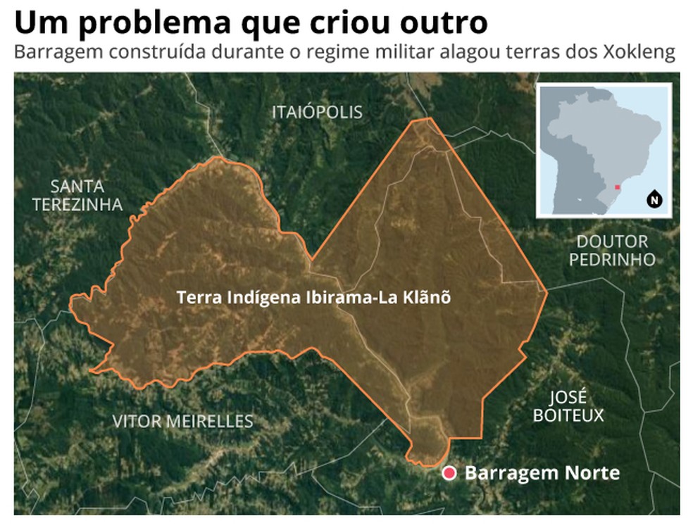 O fechamento das comportas da maior barragem de contenção de cheias em Santa Catarina, no município de José Boiteux, no domingo, reabriu feridas na memória dos indígenas Xokleng, da Terra Indígena Ibirama-Laklanõ, onde vivem cerca de 2,5 mil pessoas em nove aldeias. O represamento alaga parte da terra, o que levou ao incidente em que três indígenas foram feridos por policiais militares, no cumprimento da ordem judicial para o fechamento da Barragem Norte.