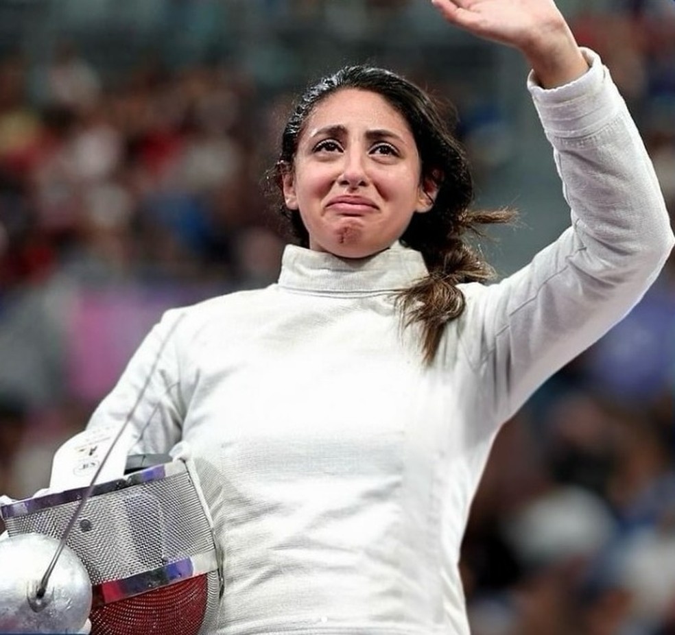 Mamãe, a esgrimista se disse orgulhosa por chegar às oitavas. Aos 27 anos, esta foi sua terceira olimpíada: ela já havia competido na Rio-2016 e em Tóquio-2020. Agora, no entanto, foi diferente: "desta vez carregando um pequeno olímpico", definiu a atleta. Ela também agradeceu ao marido, o cirurgião Ibrahim Ihab, que estava na arquibancada.